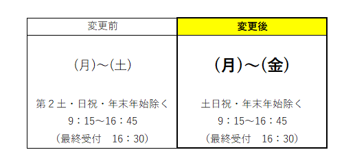 このたび弊社では、誠に勝手ながら就業日変更の理由によりヤードにおきまして、